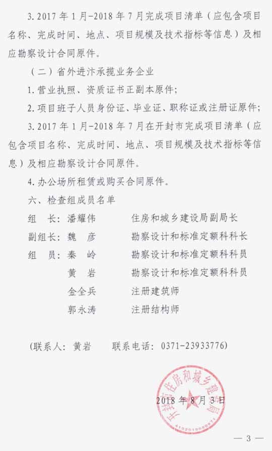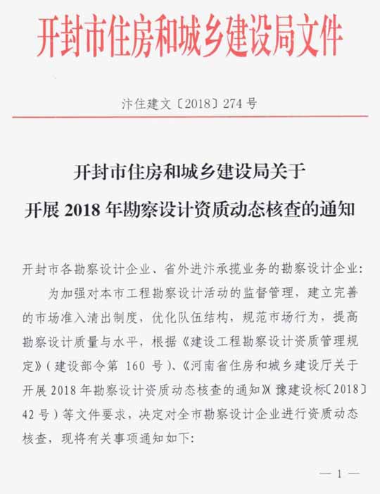 開封市關(guān)于開展2018年勘察設計資質(zhì)動態(tài)核查的通知