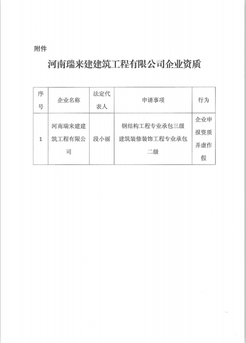 關(guān)于撤銷河南瑞來(lái)建建筑工程有限公司企業(yè)資質(zhì)的通報(bào)