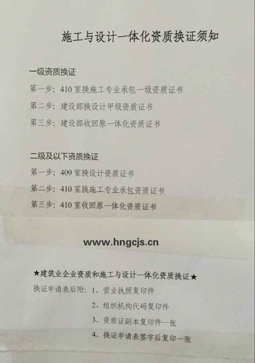 施工資質(zhì)換證及一體化資質(zhì)換證須知