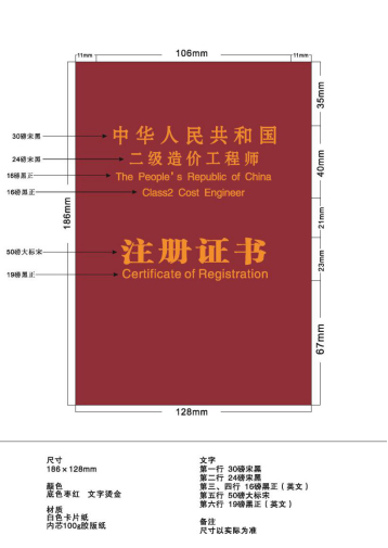 二級造價工程師注冊證書樣式。